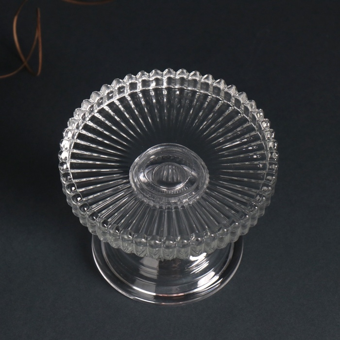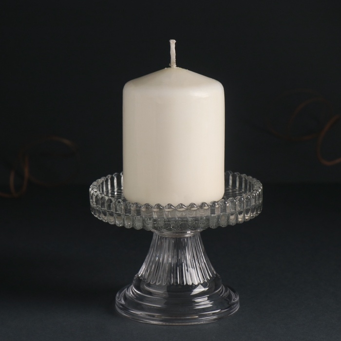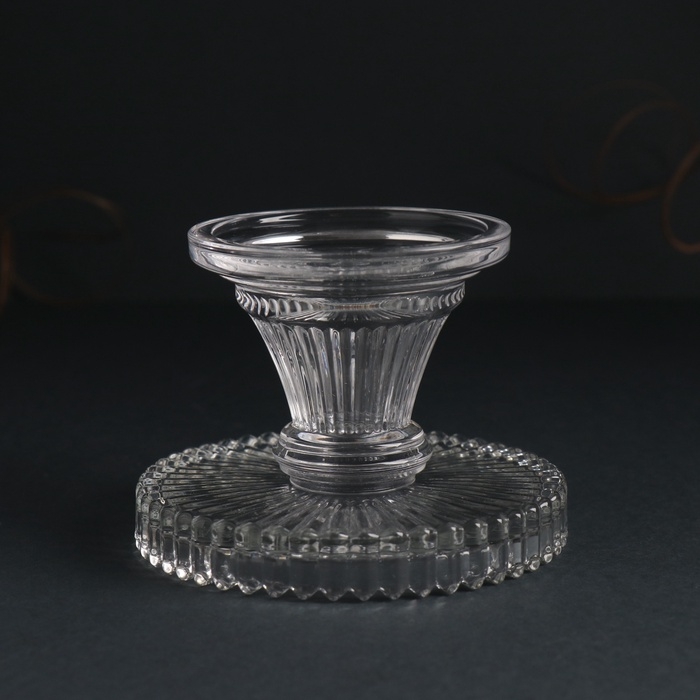 Подсвечник стекло на 1 свечу d=8,5 см "Горизонтальный узор" прозрачный 9,5х9,5х7,5 см