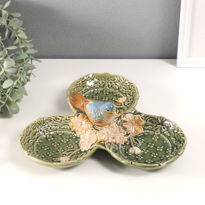 Сувенир керамика подставка "Птичка в цветах. Узоры" 26х26х8,5 см