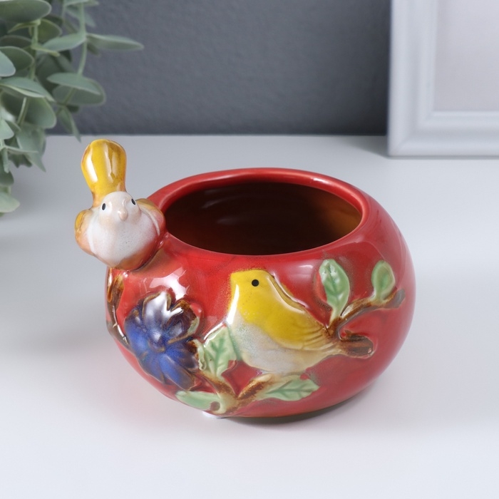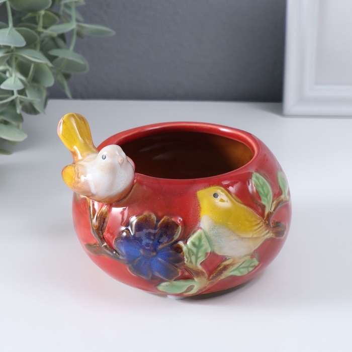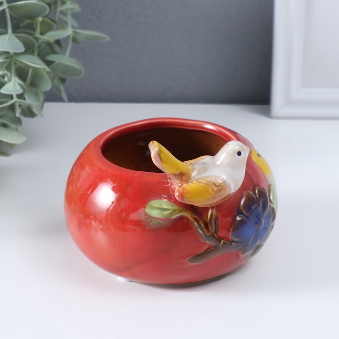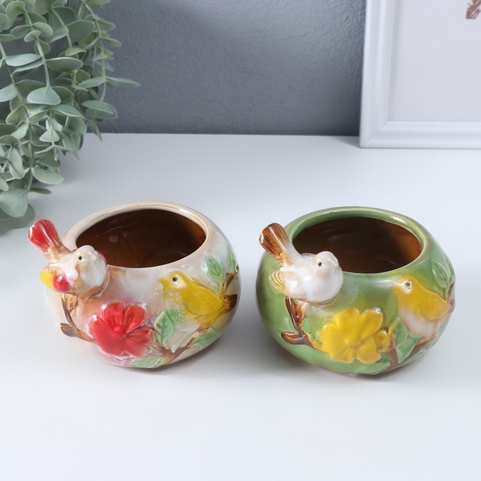 Сувенир керамика подставка "Серая птичка на чаше" МИКС 11х11,5х8,5 см