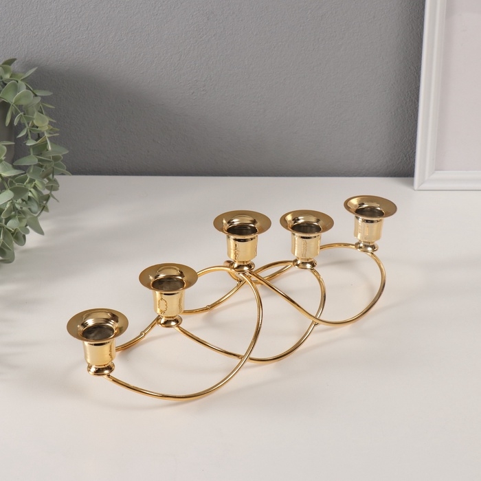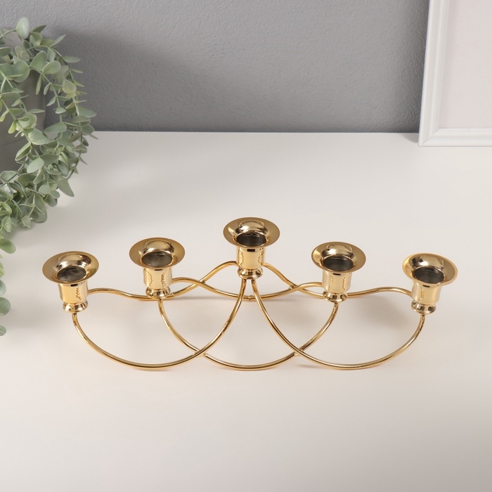 Подсвечник металл на 5 свечей "Волны" золото d-2 см 10,5х37х11 см