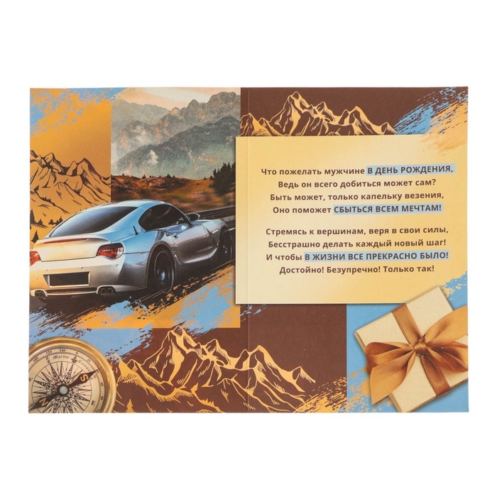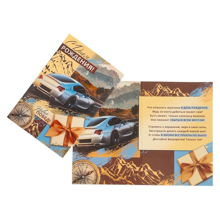 Открытка "С Днём Рождения! Новых побед!" тиснение, 12 х 18 см