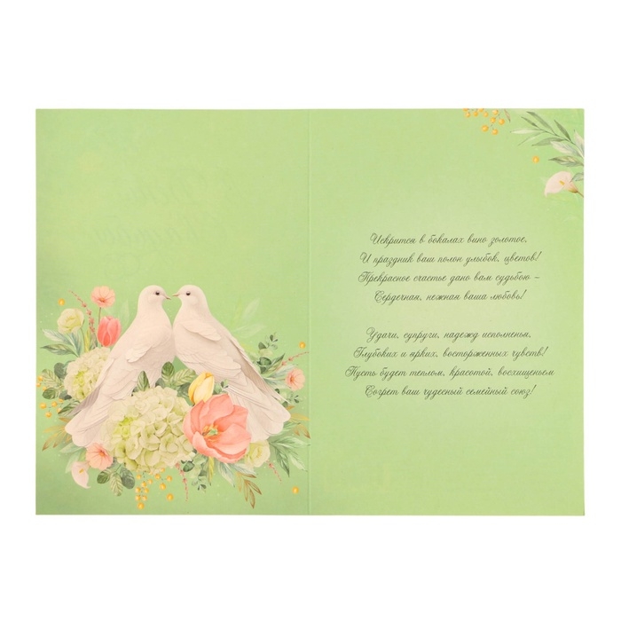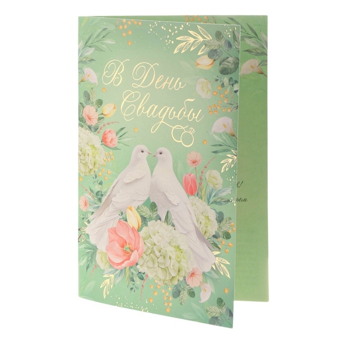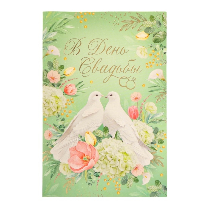 Открытка "В День Свадьбы!" тиснение, белые голуби, 12 х 18 см