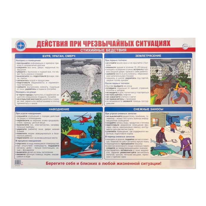 Плакат "Действия при чрезвычайных ситуациях. Стихийные бедствия." А2