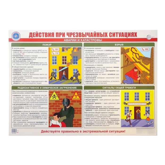 Плакат "Действия при чрезвычайных ситуациях. Аварии и катастрофы." А2