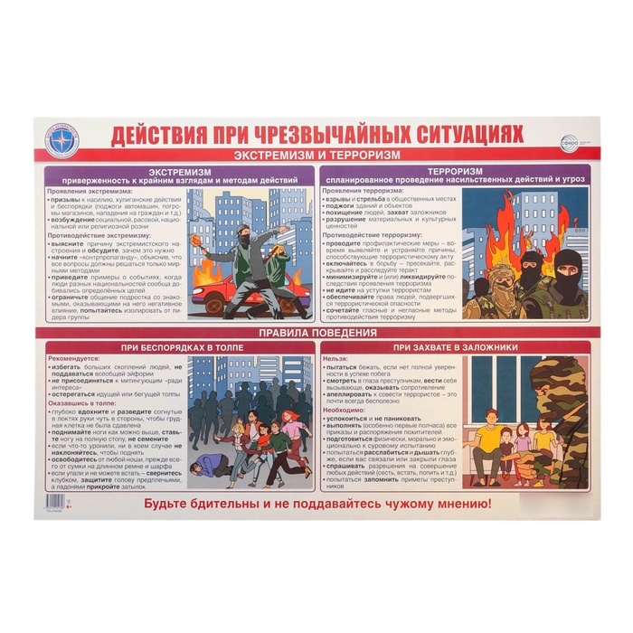 Плакат "Действия при чрезвычайных ситуациях. Экстремизм и терроризм." А2