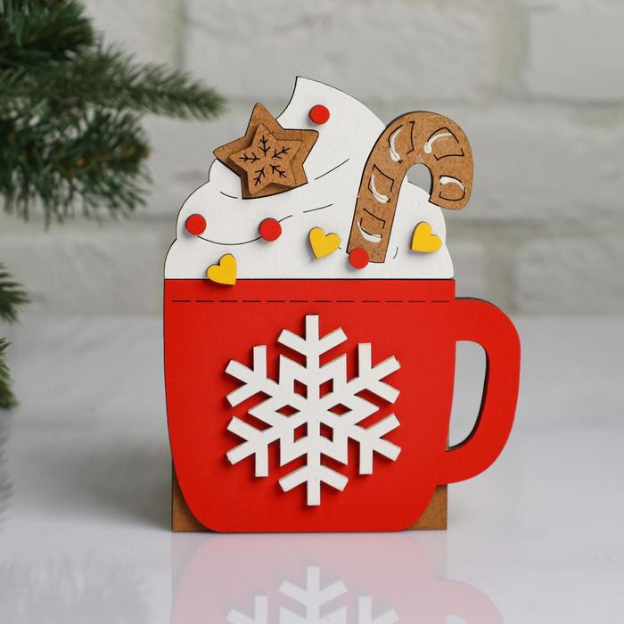 Кашпо деревянное, 12×9×15 см "Новогоднее. Кружка горячая", подарочная упаковка