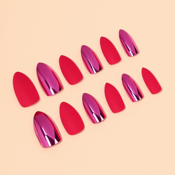Накладные ногти, 12 шт, с клеевыми пластинами, форма миндаль, матовые/хромированные, красные, розовые
