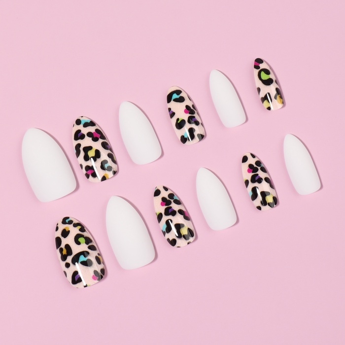 Накладные ногти «Лео», 12 шт, с клеевыми пластинами, форма миндаль, белые, бежевые