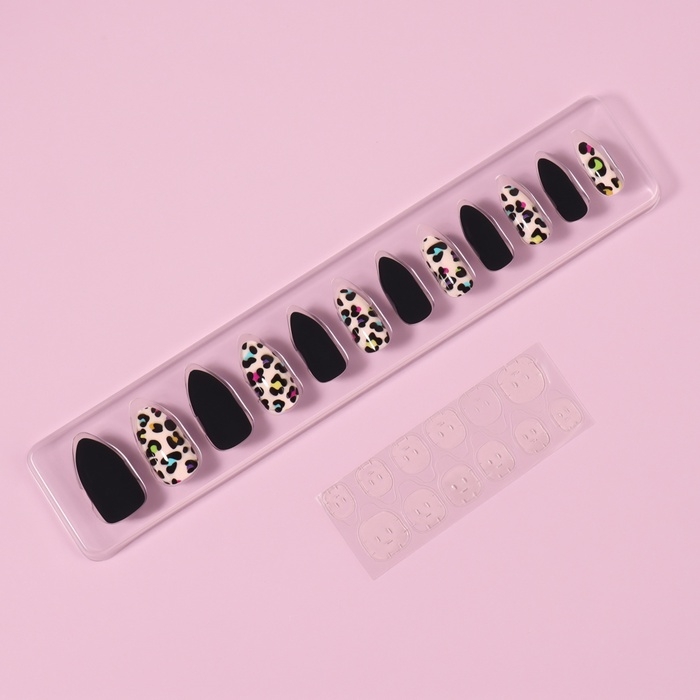 Накладные ногти «Лео», 12 шт, с клеевыми пластинами, форма миндаль, чёрные, розовые
