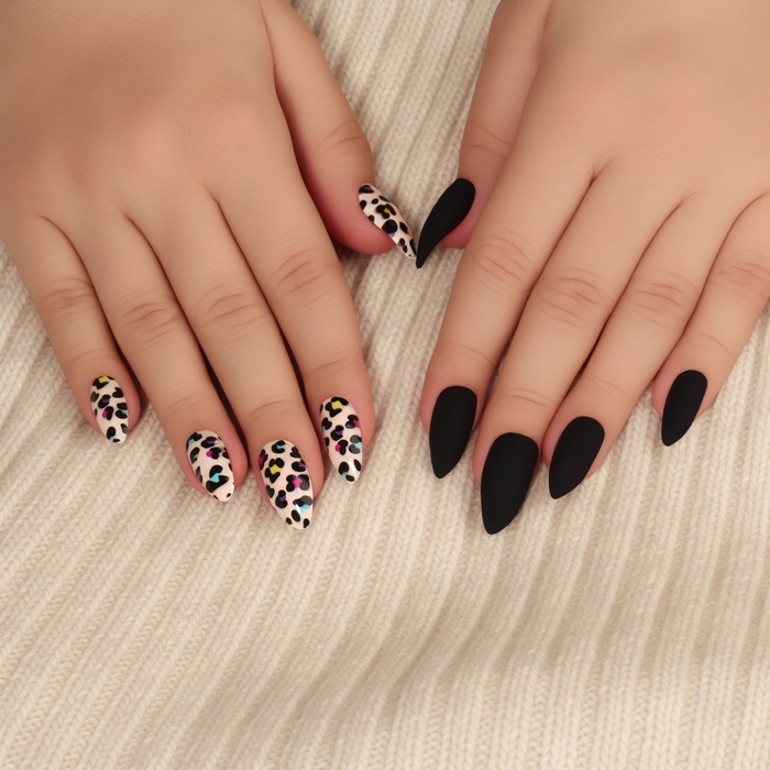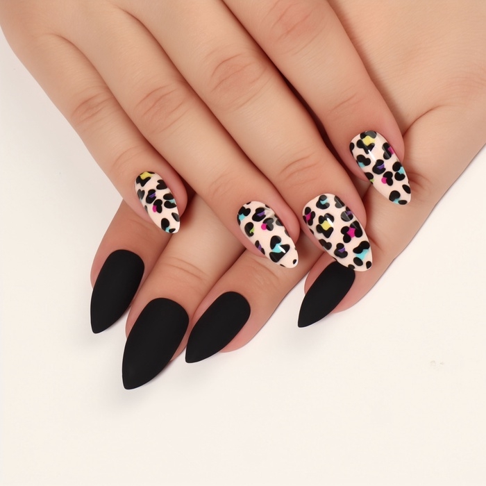 Накладные ногти «Лео», 12 шт, с клеевыми пластинами, форма миндаль, чёрные, бежевые