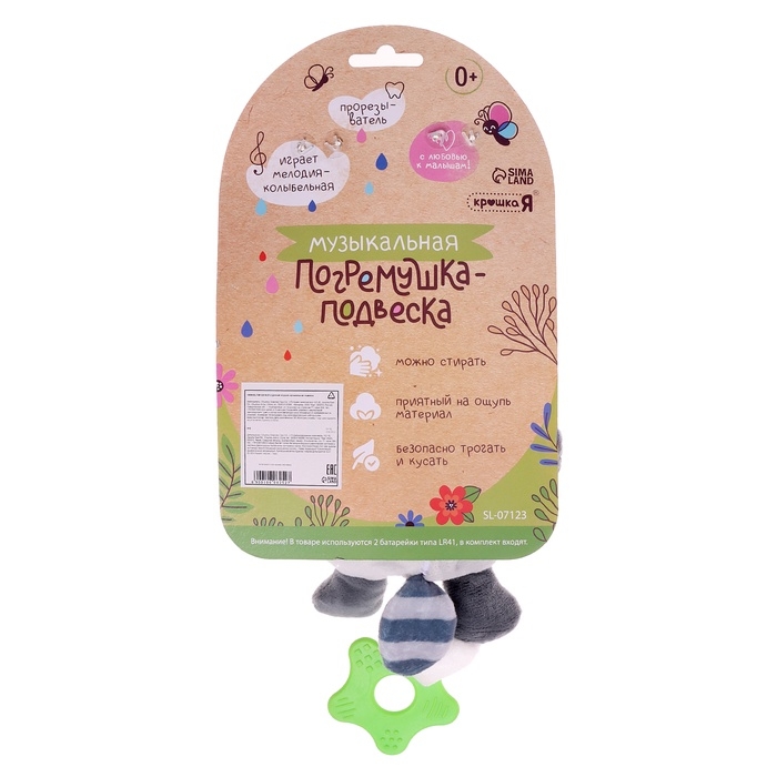 Погремушка «Енот», музыкальная, подвесная, цвет серый