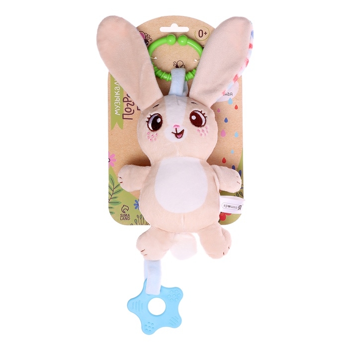 Погремушка «Зайчик», музыкальная, подвесная, цвет бежевый