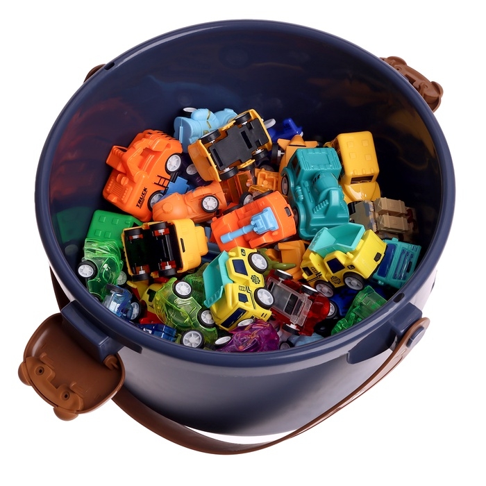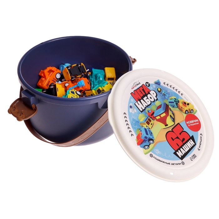 Машинки детские «Мега набор», в ведре, инерционные, 65 шт., с игровым полем