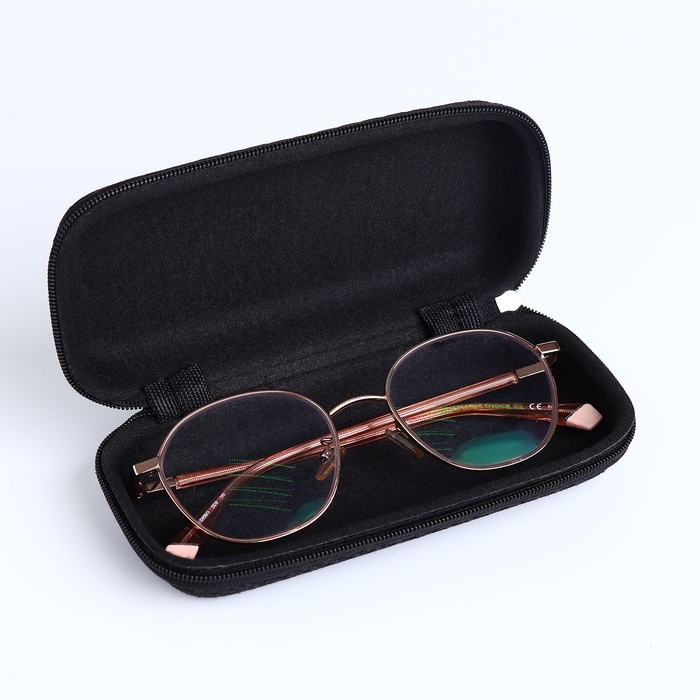 Футляр для очков на молнии, длина 15 см, цвет чёрный