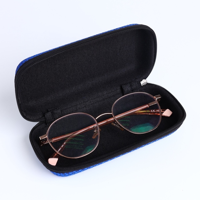 Футляр для очков на молнии, длина 15 см, цвет синий