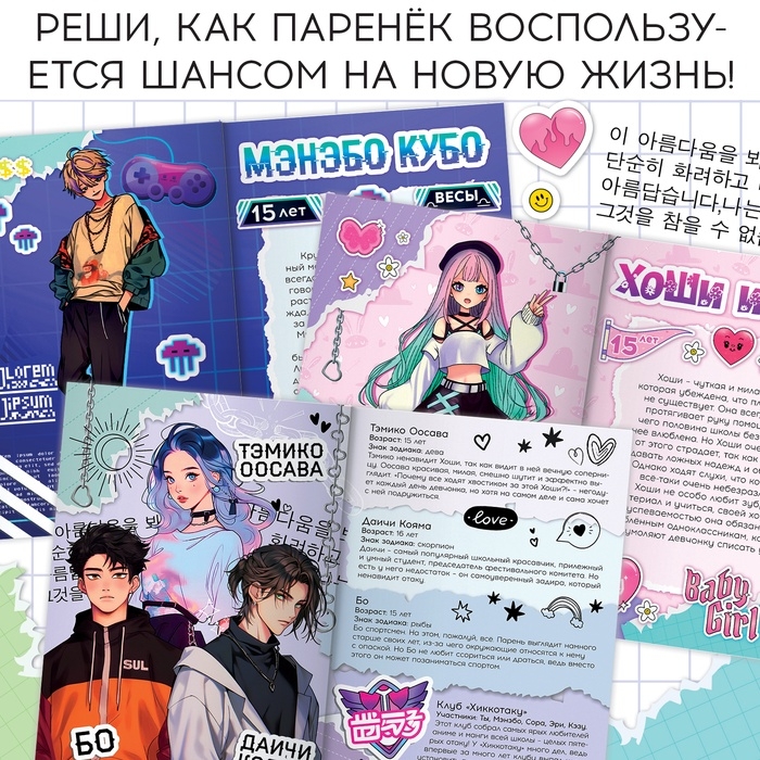Набор для юных творцов и аниме-фанатов! Хочешь создать свою уникальную историю? С набором «Создай свой сюжет. Красавчик из клуба отаку» это стало еще проще! Развивай фантазию, улучшай навыки письма и просто отлично проводи время. Набор идеально подойдет для совместного творчества с друзьями или станет отличным подарком для любителей аниме и азиатской культуры.