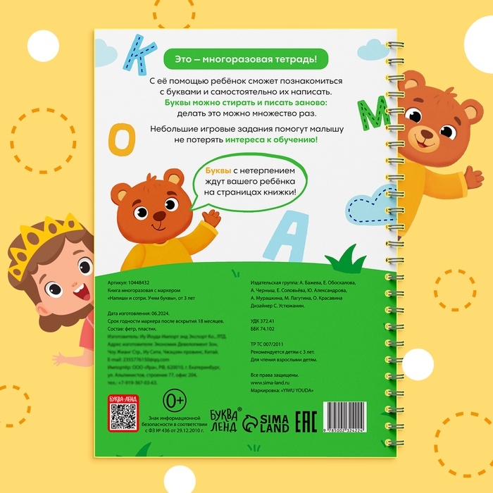 Книга многоразовая с маркером «Напиши и сотри. Учим буквы», от 3 лет