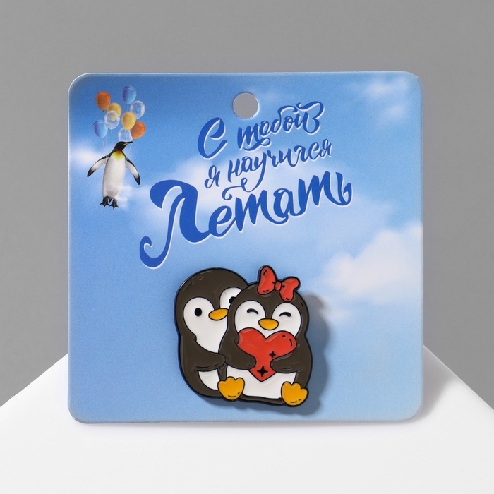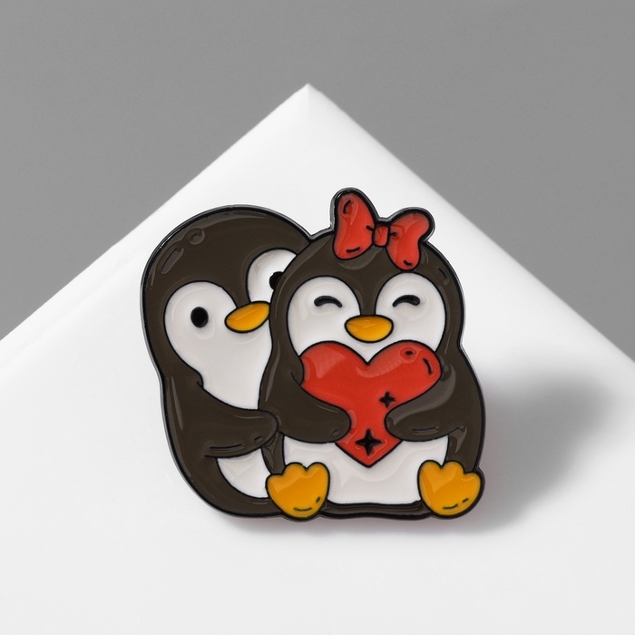 Значок "Пингвинята" парочка, цветной в чёрном металле