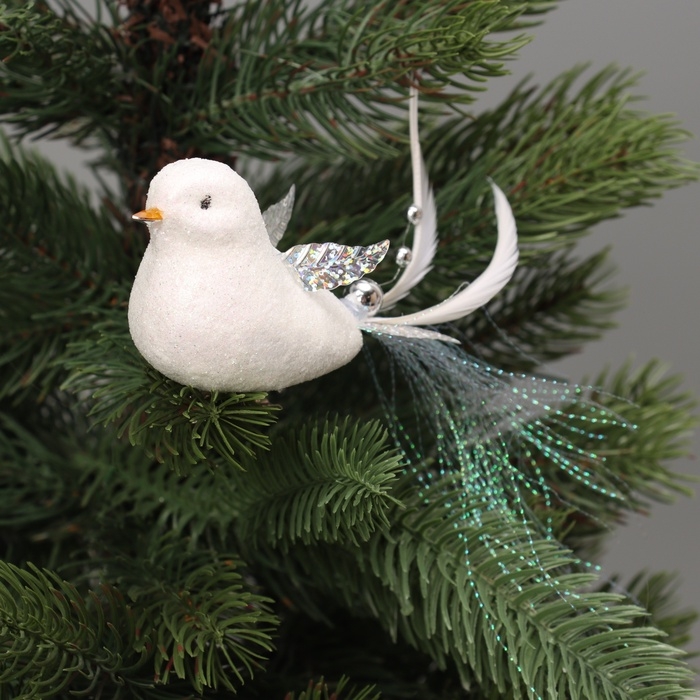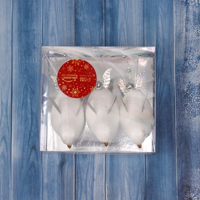 Ёлочные игрушки 3 шт. «Зимнее волшебство. Маленькая птичка» пластик, 5х11,5 см, белый