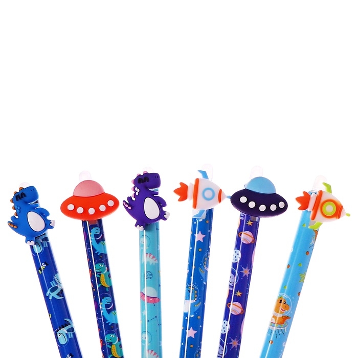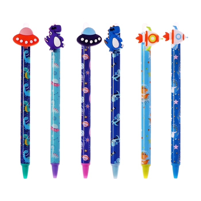Ручка гелевая 0.5 мм, со стираемыми чернилами, синяя, штрихкод на штуке, МИКС Космос/Дино