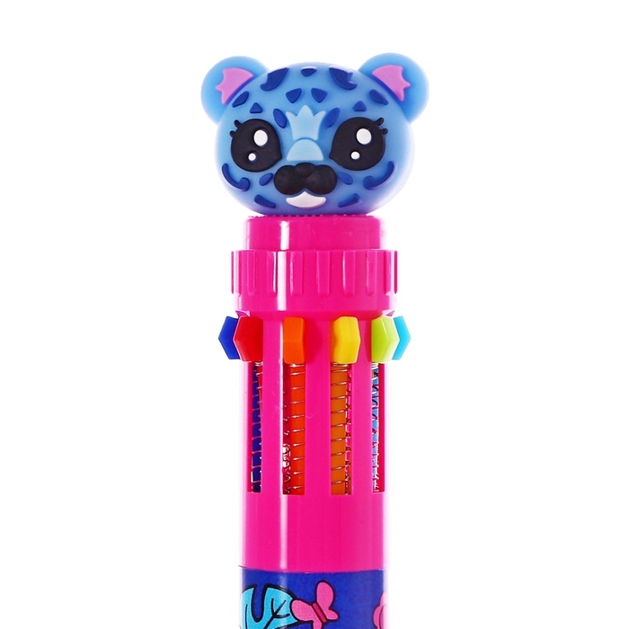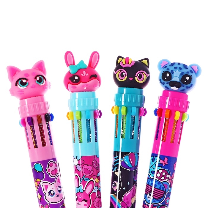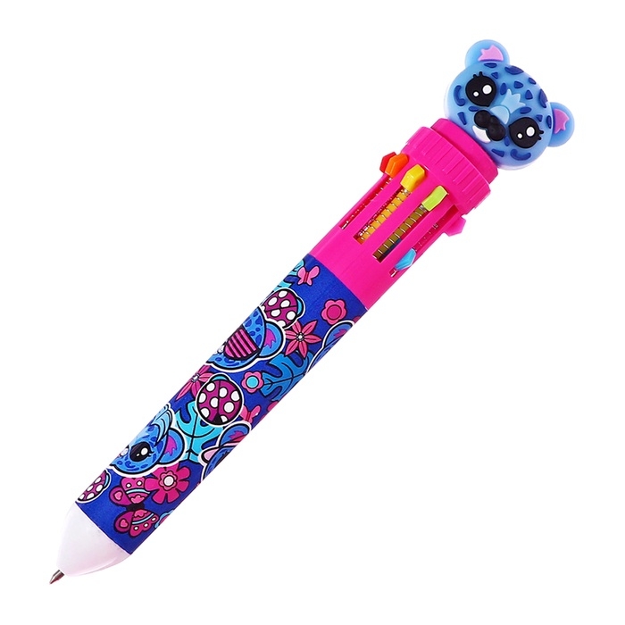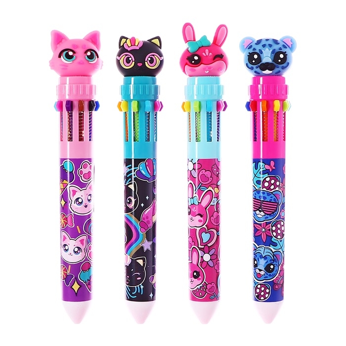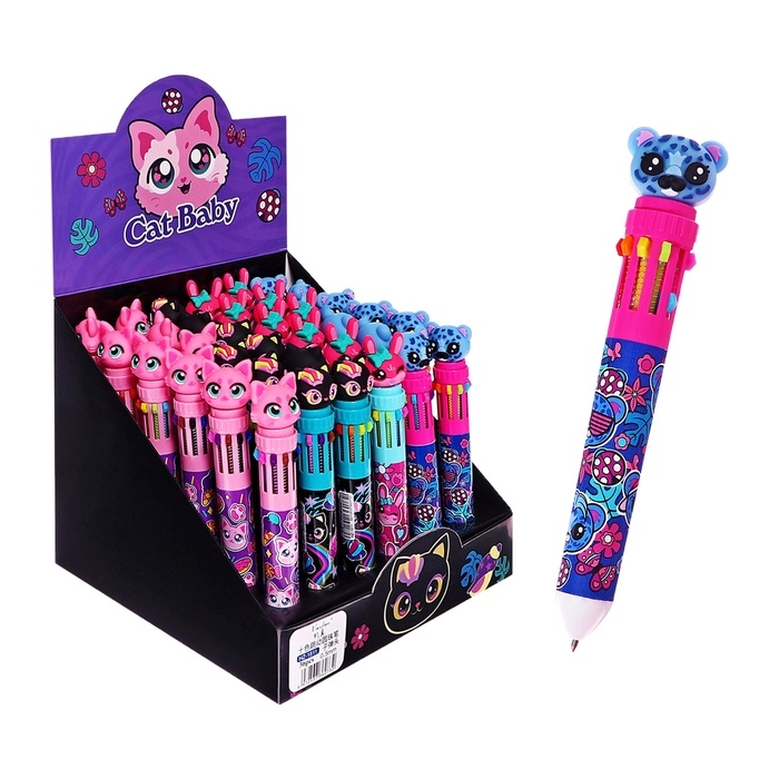 Ручка шариковая автоматическая, 10-ти цветная, штрихкод на штуке, МИКС Котик