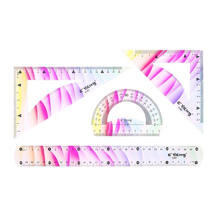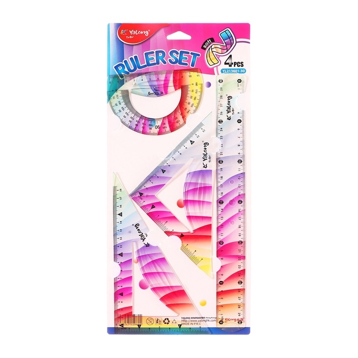 Набор геометрический гибкий силиконовый (линейка 30см+2 угольника+транспортир) Градиент