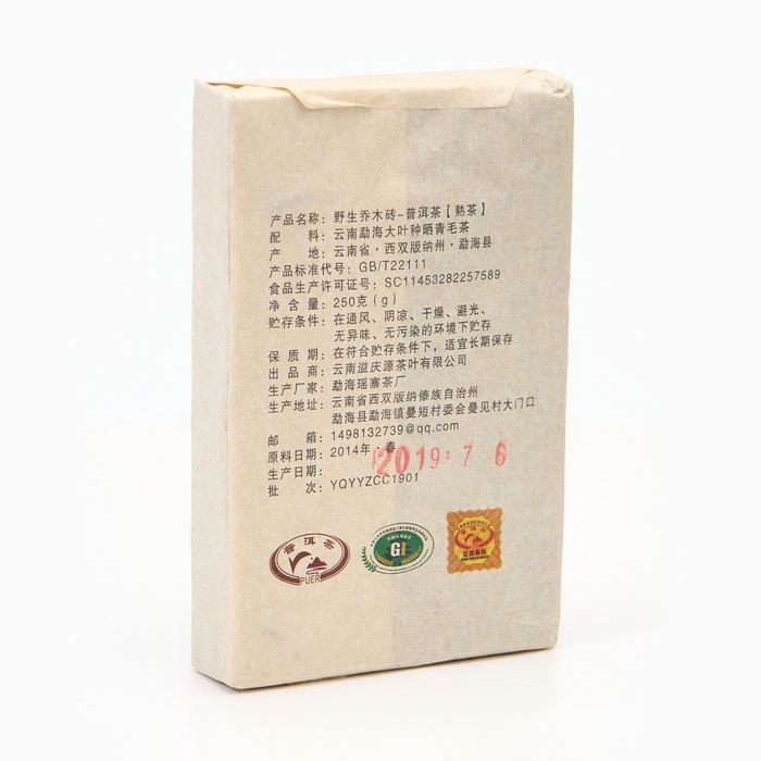 Китайский выдержанный черный чай "Шу Пуэр Цяо Му", 250 г, 2019 г, Юньнань, кирпич