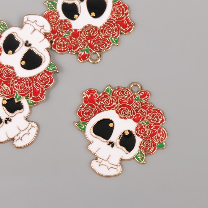 Декор для творчества металл, эмаль "Череп в цветочном венке" 3,1х3 см