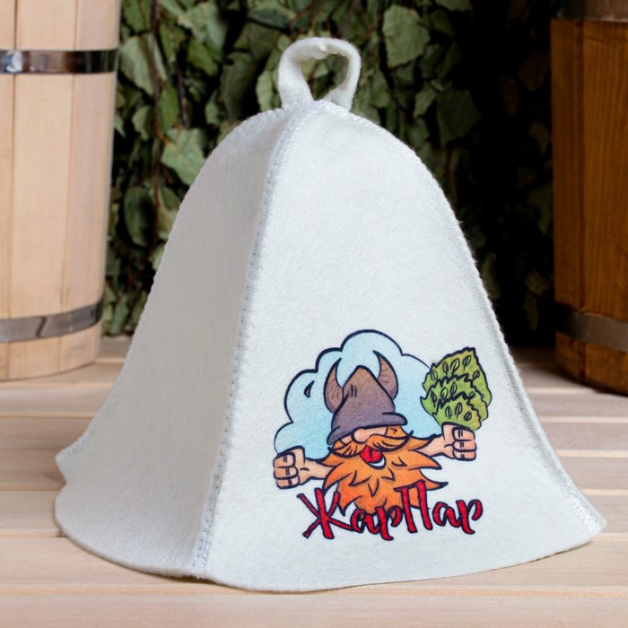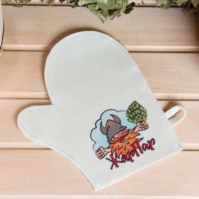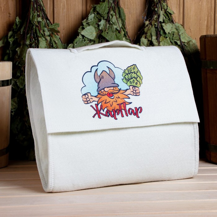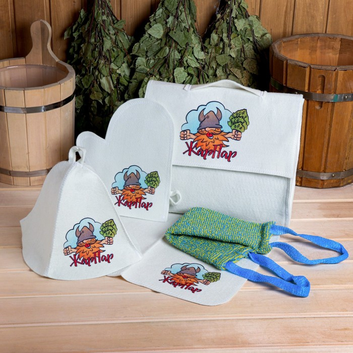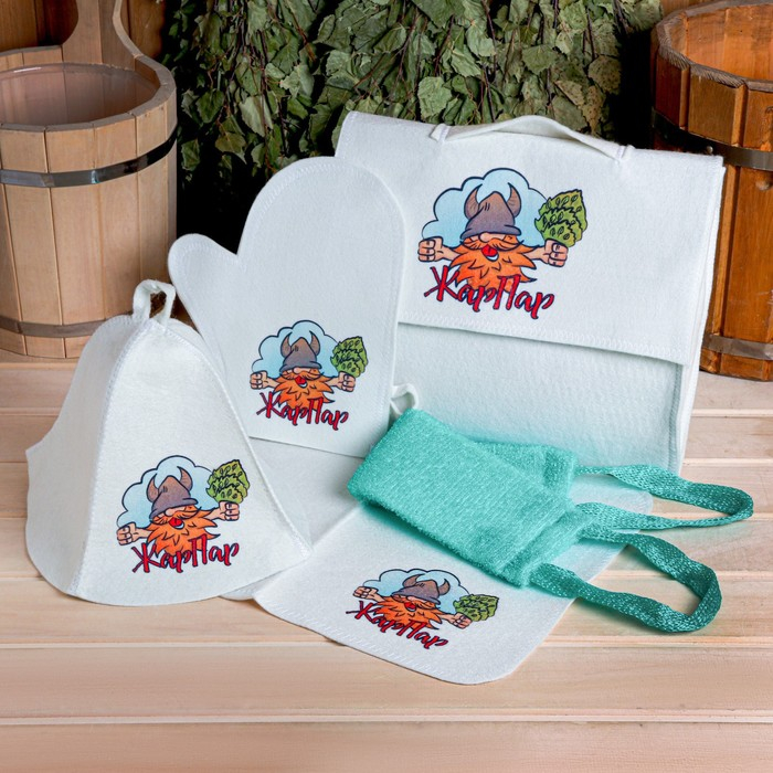 Набор для бани и сауны 5 в 1(сумка,шапка,варежка,коврик,мочалка),с принтом "Жар Пар",белый