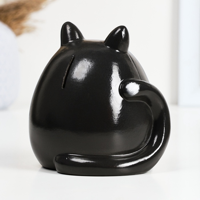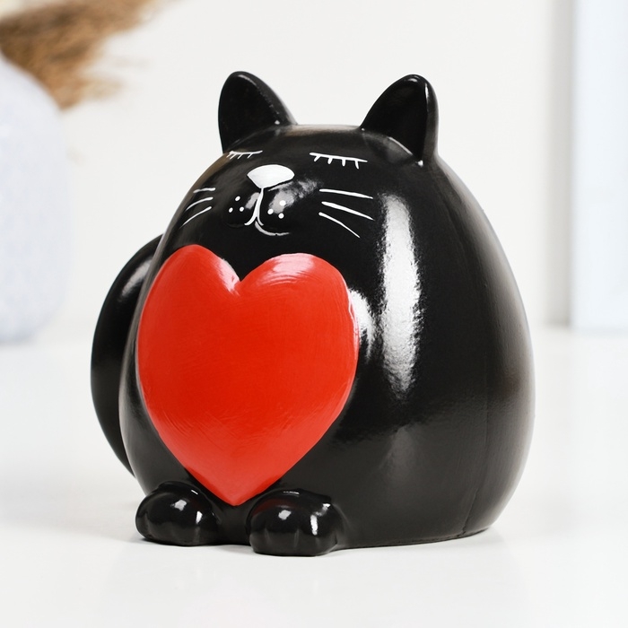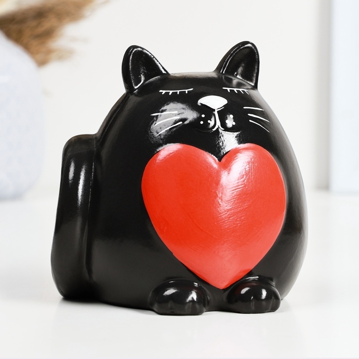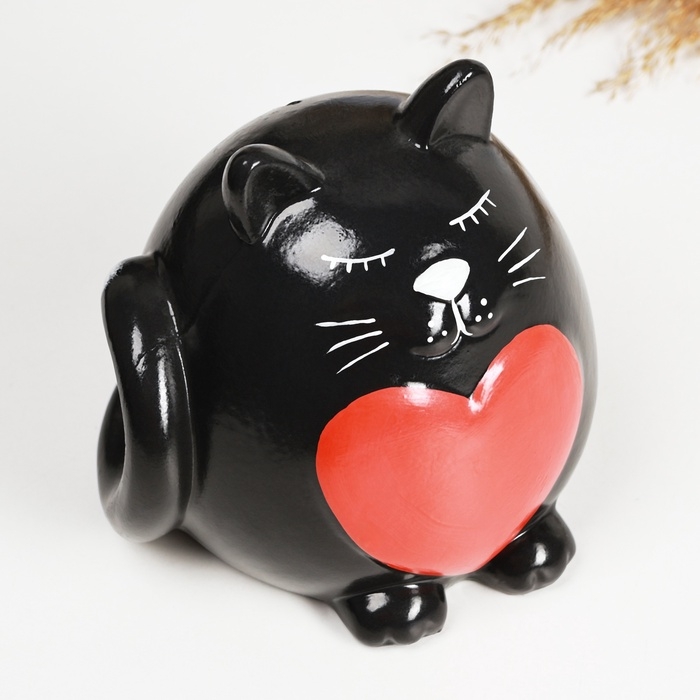 Копилка "Круглый кот с сердцем" черный, 14см