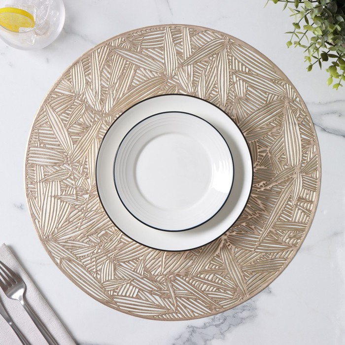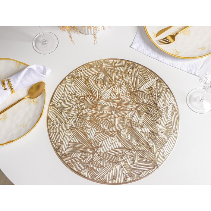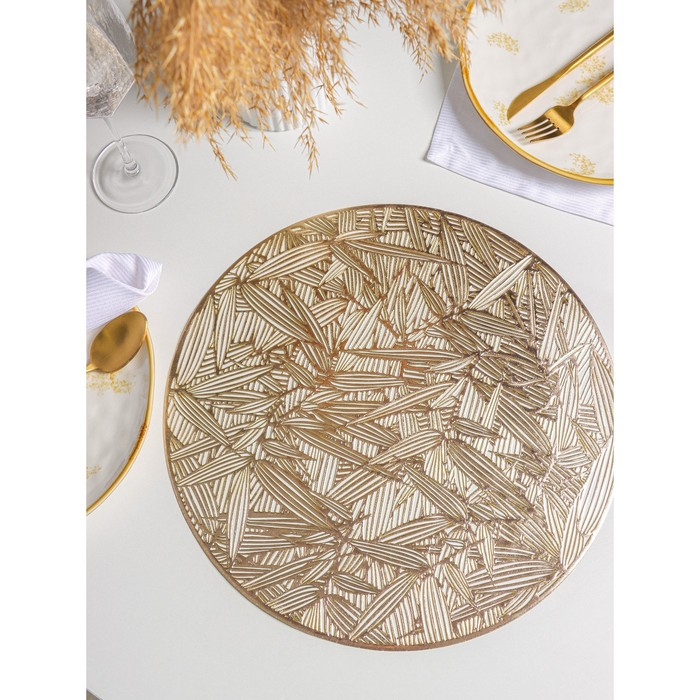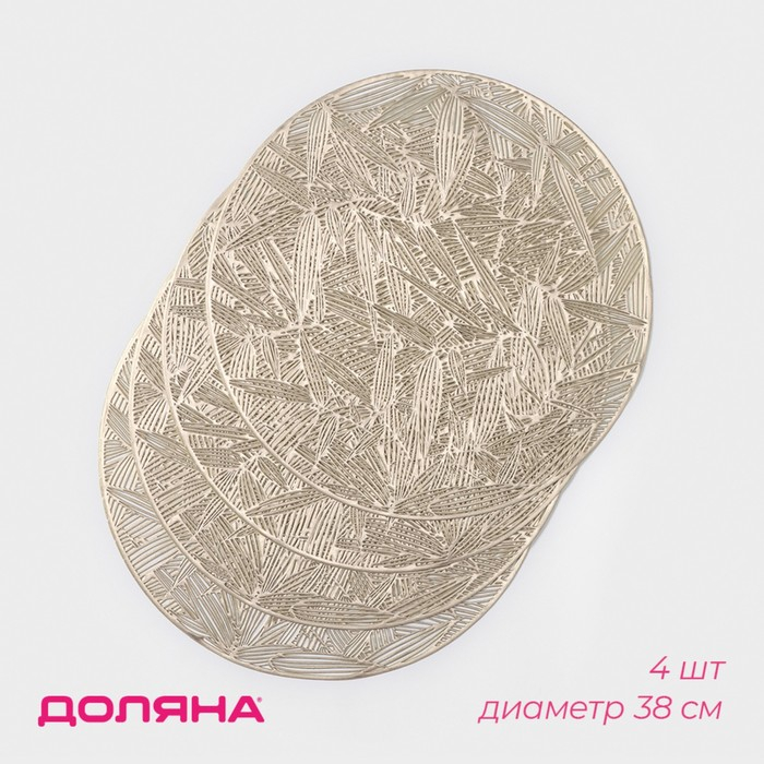Салфетки сервировочные на стол Доляна «Листья», d=38 см, 4 шт, цвет золотой