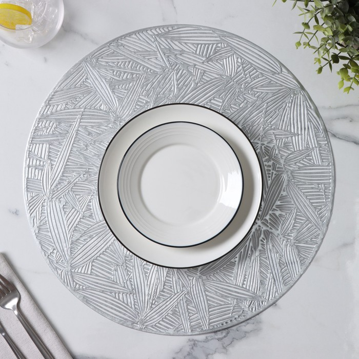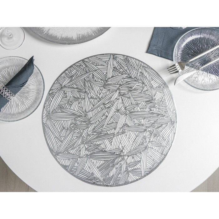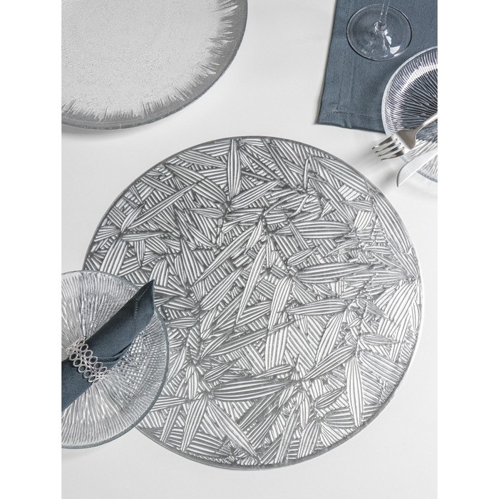 Салфетки сервировочные на стол Доляна «Листья», d=38 см, 4 шт, цвет серебряный