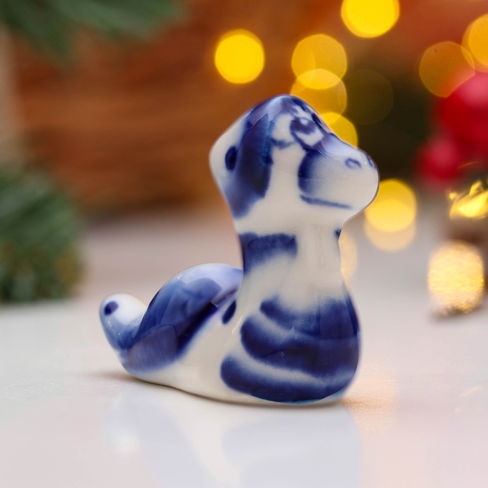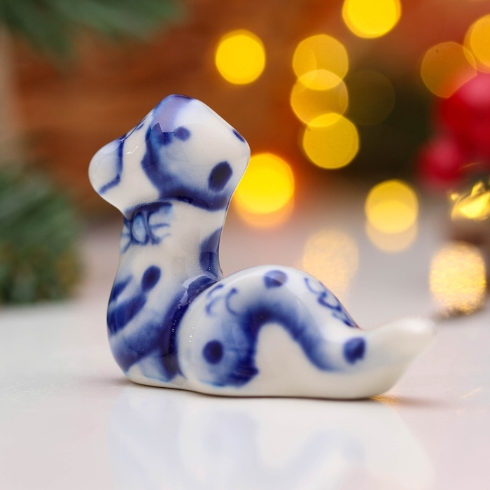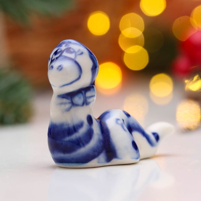 Новый год. Сувенир символ года "Змея Маруся", гжель, цвет, 4,5 см