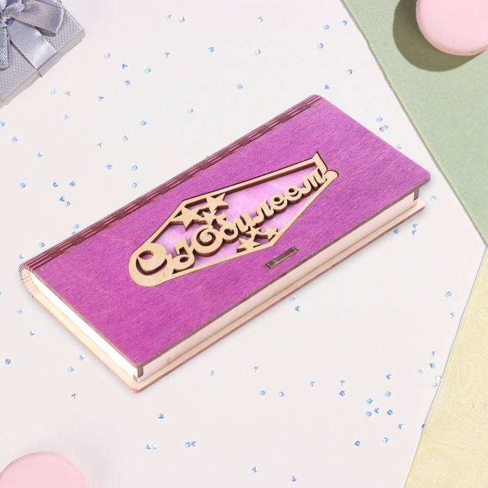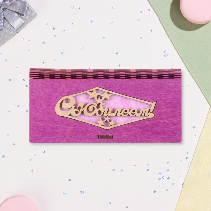 Конверт деревянный «С Юбилеем!» сиреневый фон, 8,3×17 см