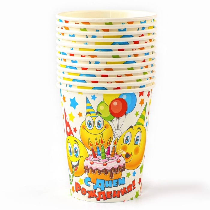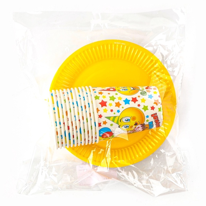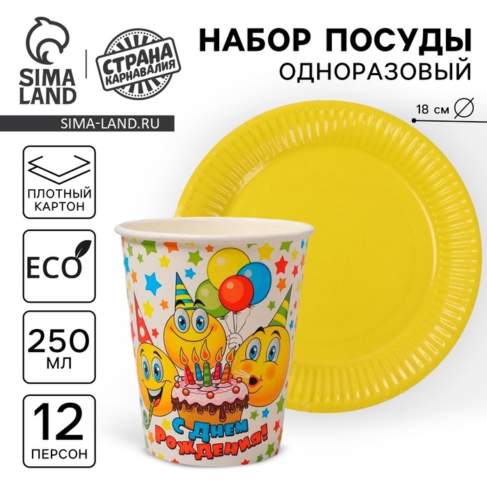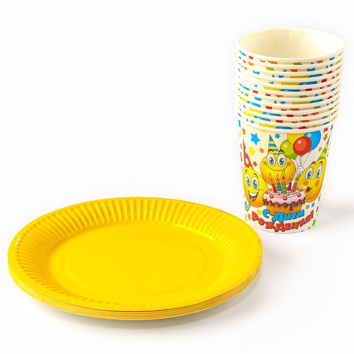 Набор посуды одноразовый «Смайлы», 12 стаканов, 12 тарелок