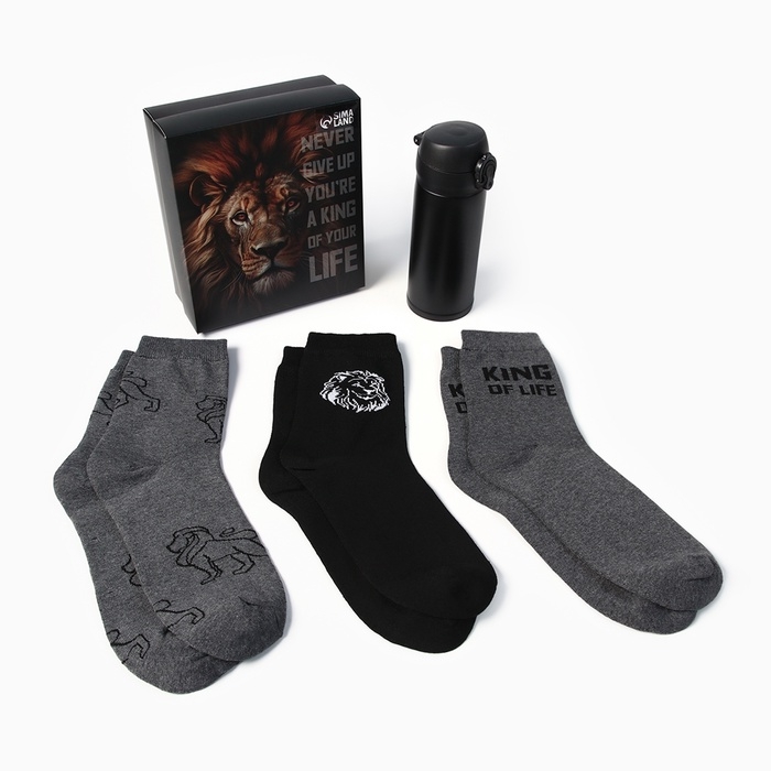 Подарочный набор термос и носки 3 пары KAFTAN King, р. 41-44 (27-29 см)
