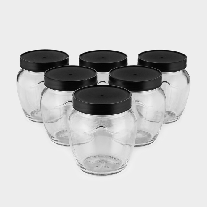 Набор стеклянных банок с чёрной полимерной крышкой, ТО-82 мм, 550 мл, 6 шт.