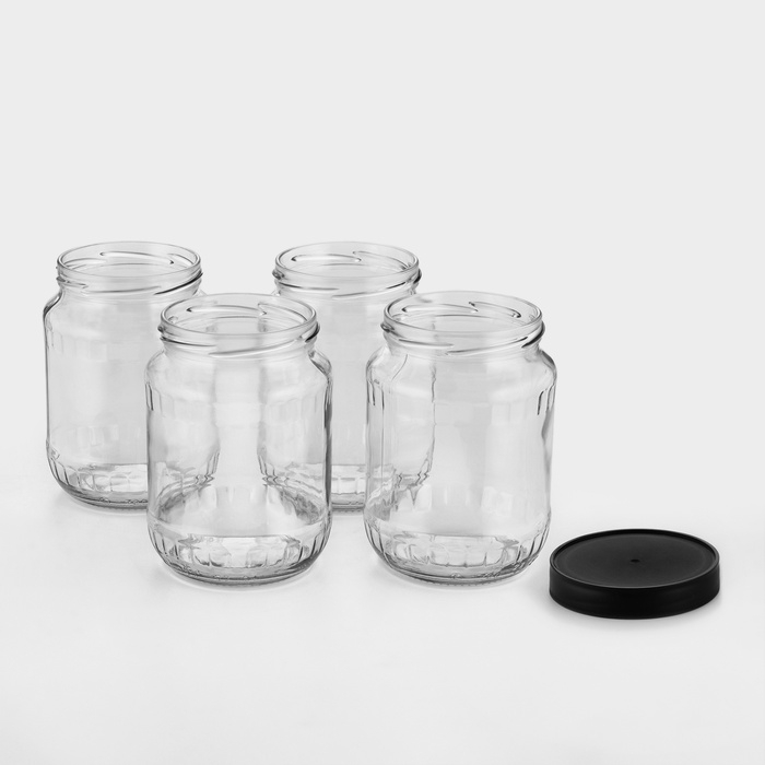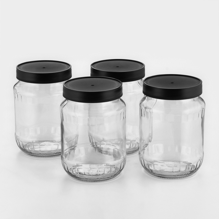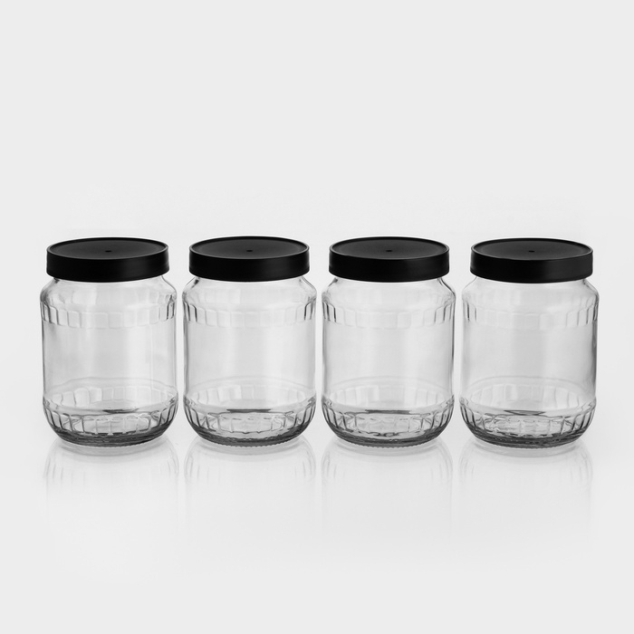 Набор стеклянных банок с чёрной полимерной крышкой, ТО-82 мм, 720 мл, 4 шт.