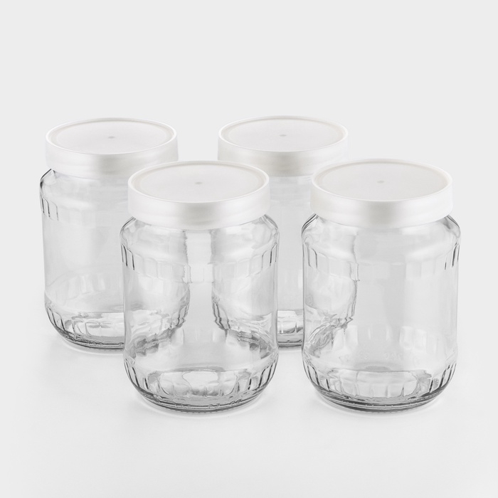 Набор стеклянных банок с серебристой полимерной крышкой, ТО-82 мм, 720 мл, 4 шт.
