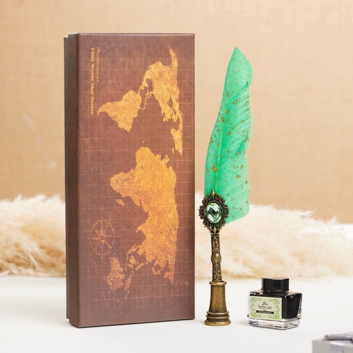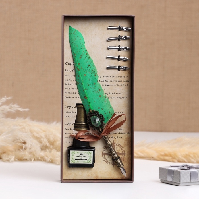 Набор подарочный 3в1 "Артефакт": перьевая ручка на подставке, чернила, наконечники, зеленый