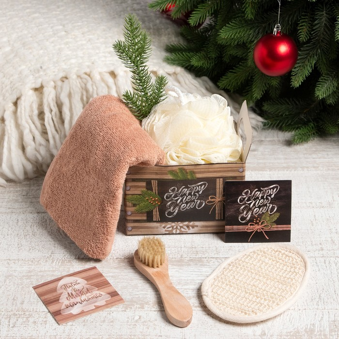 Новогодний подарочный набор Этель "Happy new year", полотенце 30х60 см и аксессуары