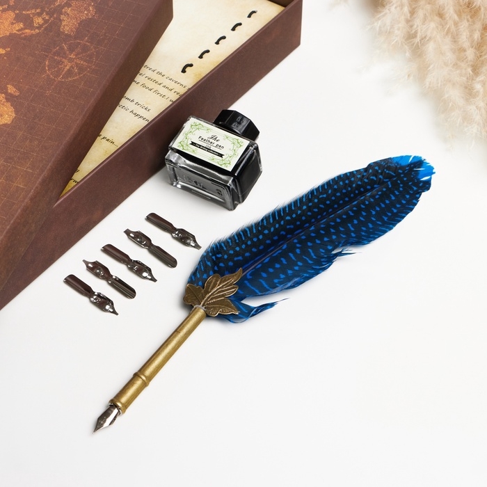 Набор подарочный 3в1 "Герби": перьевая ручка, чернила, наконечники, голубой