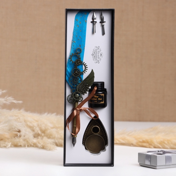 Набор подарочный 3в1 "Стимпанк" перьевая ручка, чернила, наконечники, голубой