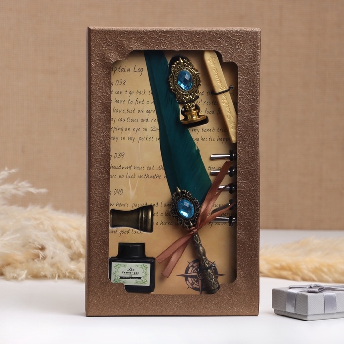 Набор подарочный 5в1 "Реликвия": перьевая ручка бирюза, чернила, наконечники, печать, воск