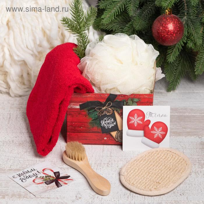 В состав набора входят: Варежка-мочалка, Декор, Мочалка, Открытка, Полотенце, Щётка