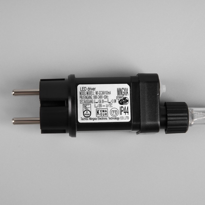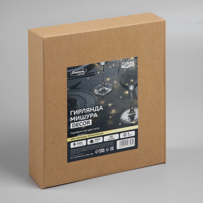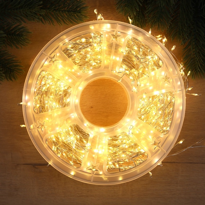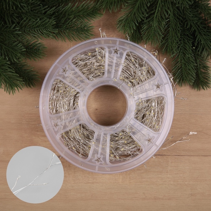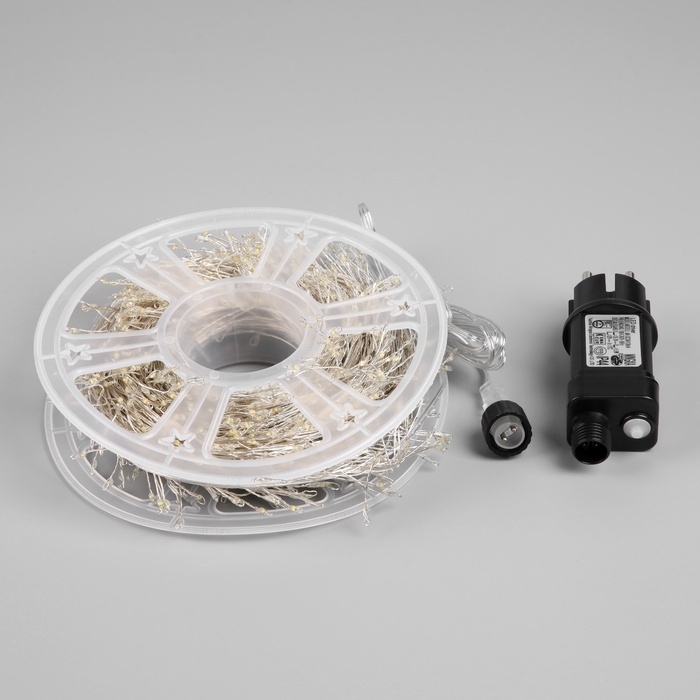 Гирлянда «Мишура» 50 м роса, IP44, серебристая нить, 1500 LED, 8 режимов, свечение тёплое белое, 36 В