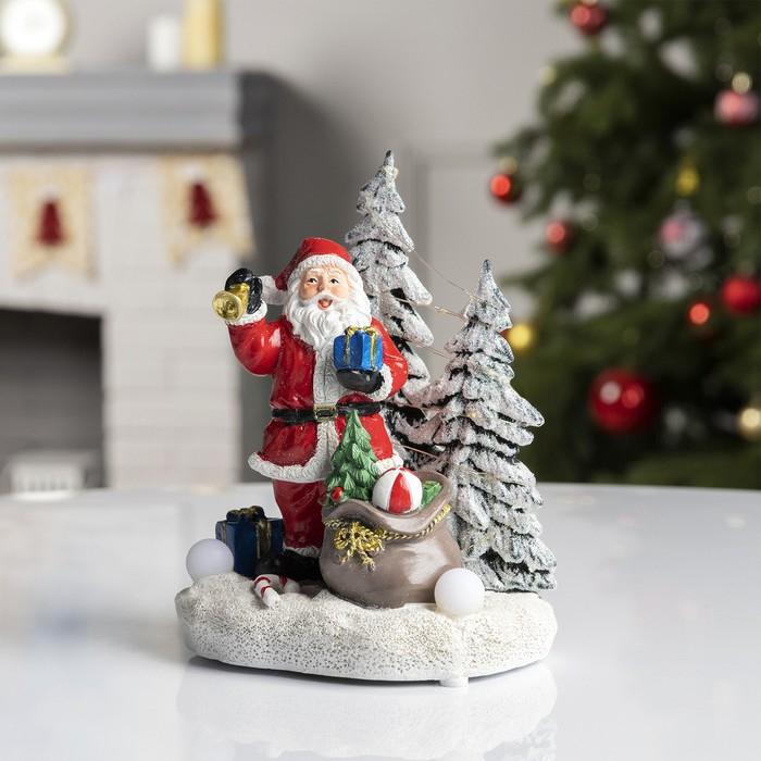 Светодиодная фигура «Дед Мороз» 12.5 × 19 × 9 см, керамика, батарейки АААх3 (не в комплекте), свечение тёплое белое