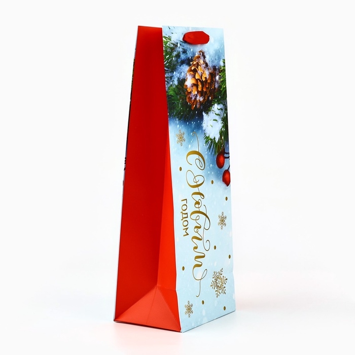 Пакет подарочный новогодний ламинированный под бутылку «Снежный лес», 13 x 36 x 10