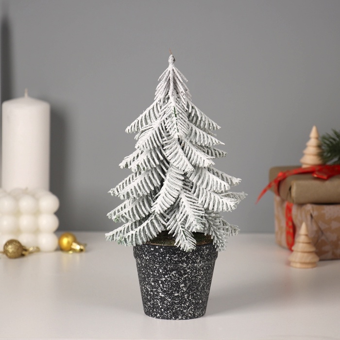 Искусственная ёлка заснеженная настольная «Зимнее волшебство. Метель» в горшочке, 21 см, ветки литые отгибаются