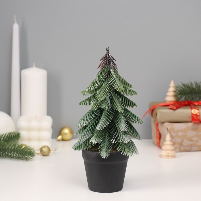 Искусственная ёлка настольная «Зимнее волшебство. Заснеженная с блёстками» в горшочке, 22 см